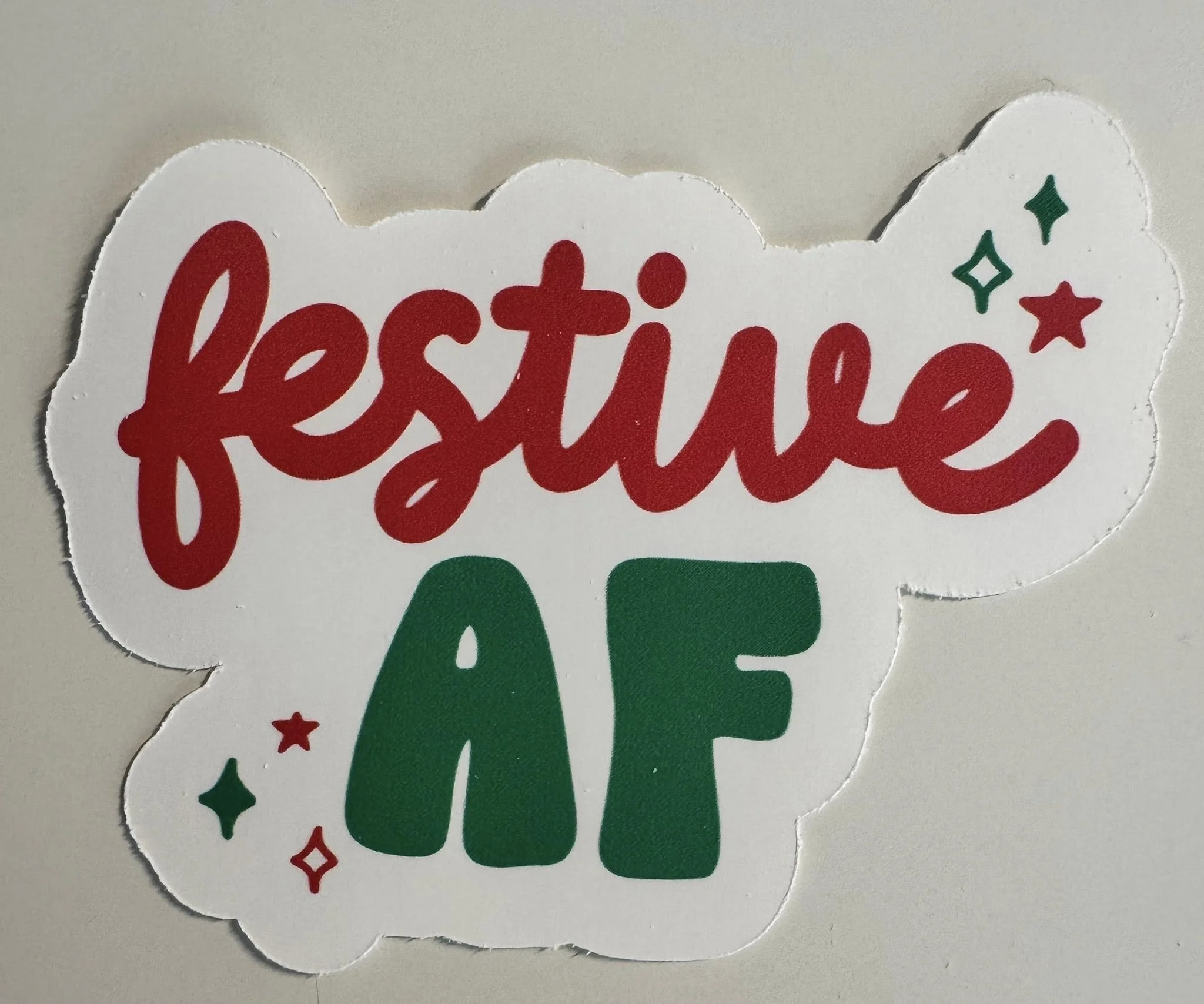 Christmas Categories: All Animals Books Christmas Food Hanukkah Holidays Jewish Motivational Nature States All / “Merry and Bright” Holiday Sticker $3.00 Add To Cart Added! “Festive AF” Holiday Sticker $3.00 Add To Cart Added!